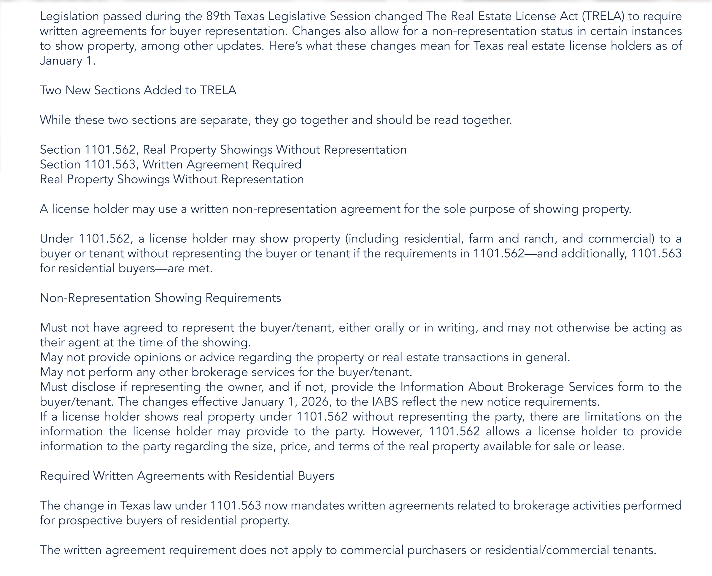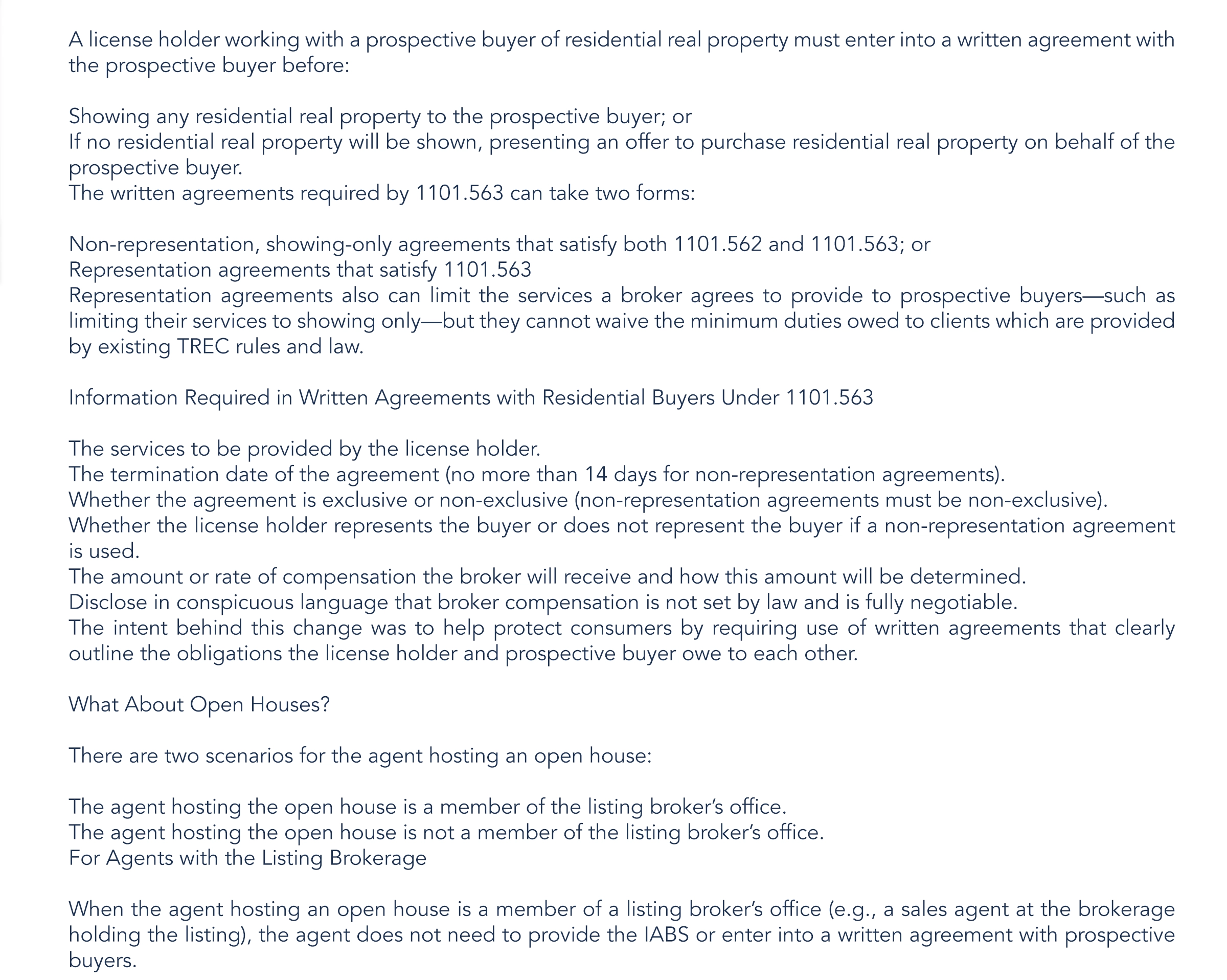 Written Agreements: Residential Buyers